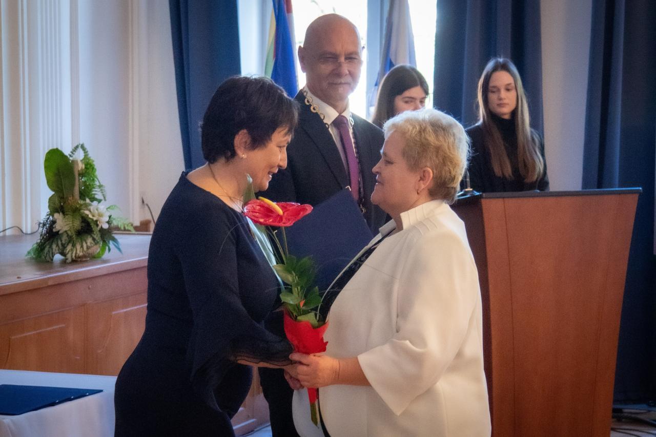 Ocenenie si v tento deň prevzalo celkom desať pedagogických a štyria technicko-hospodárski pracovníci za dlhoročnú pedagogickú prácu a významný prínos v oblasti školstva v meste Moldava nad Bodvou.