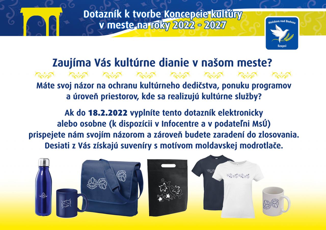 Ak do 18. februára 2022 vyplníte tento dotazník elektronicky alebo osobne (k dispozícii v Infocentre a v podateľni Mestského úradu) prispejete nám svojím názorom a zároveň budete zaradení do zlosovania. Desiati z Vás získajú suveníry s motívom moldavskej modrotlače.