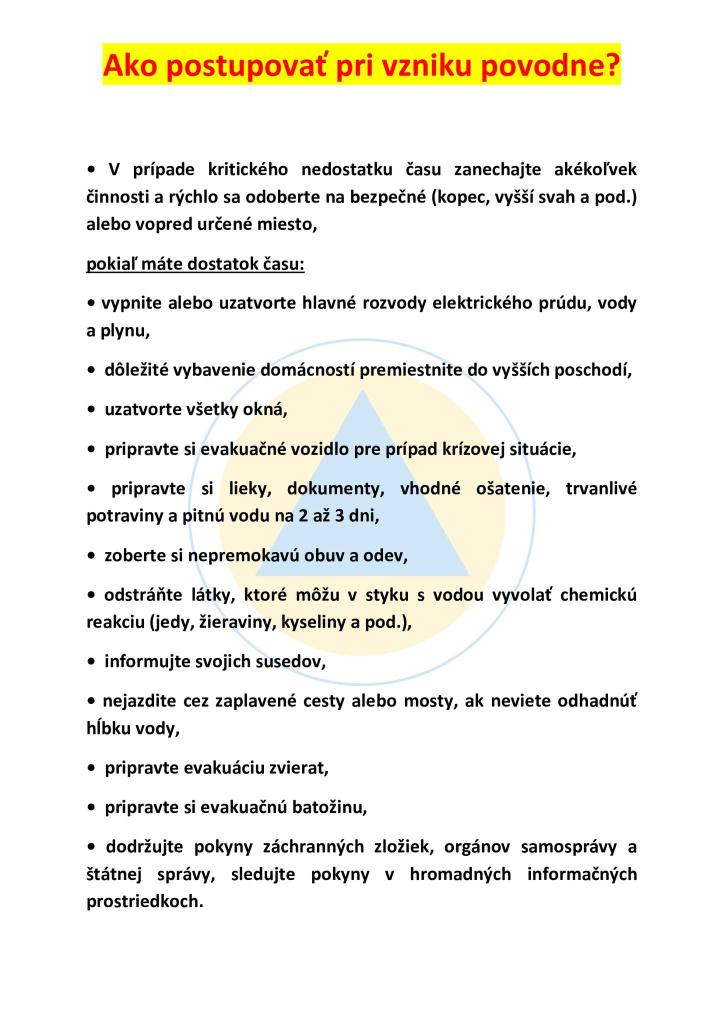 Oznamy - Ako postupovať pri vzniku povodne?